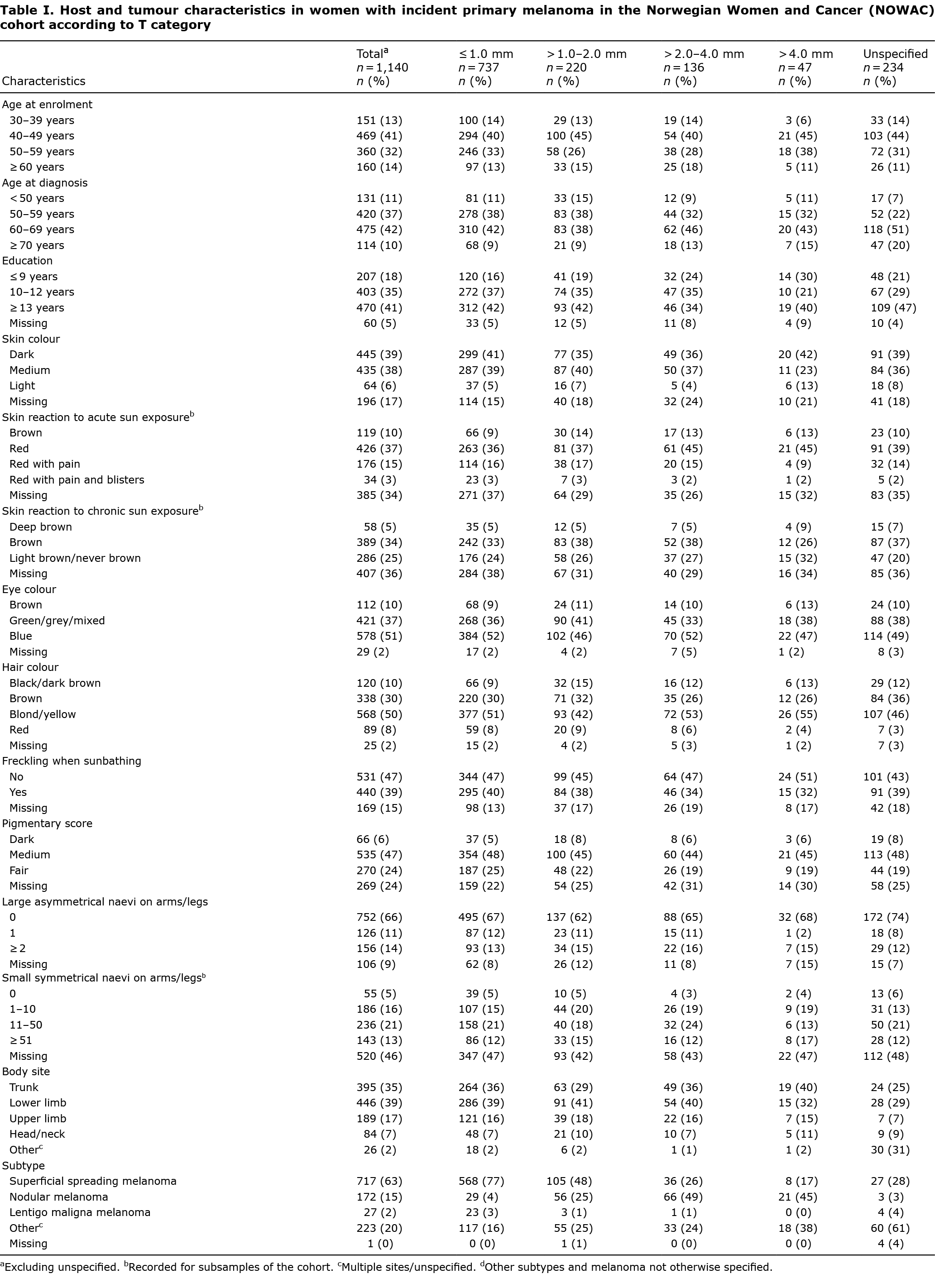 Key words: cohort study; pigmentary characteristics; melanoma; prognosis; tumour thickness; naevi.